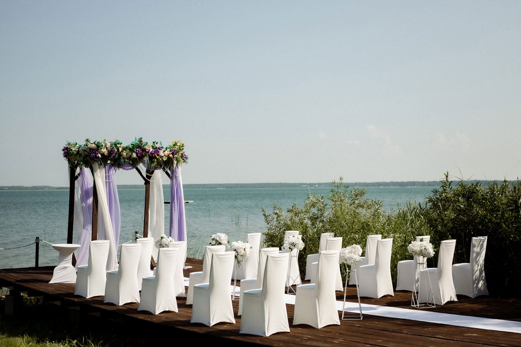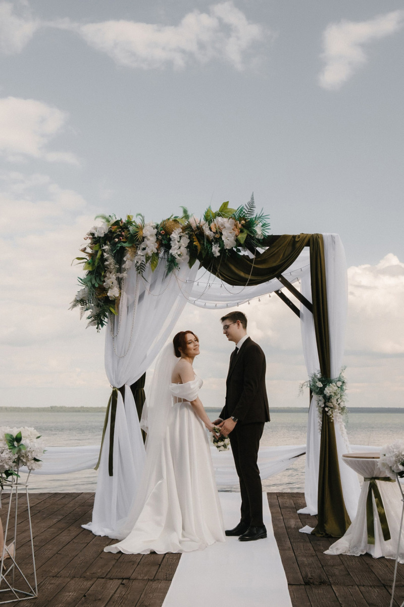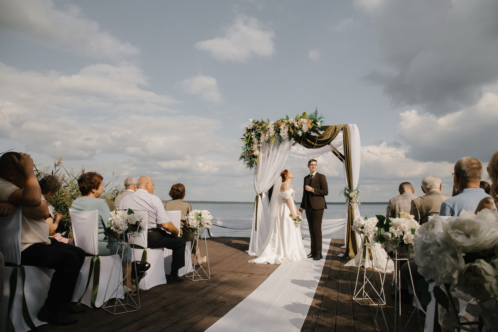 Вся церемония проводится без равнодушных регистраторов и стандартных текстов, в непринужденной обстановке с организованным фуршетом. Помимо организованной душевной обстановки, которую мы можем организовать по вашему вкусу, Вас окружают чудесные виды природы. Есть несколько вариантов расположения свадебной церемонии. У нас в распоряжении есть береговая песочная площадка, прибрежная терраса, а также пирсы над водой. Мы умеем предусмотреть все нюансы, а также учесть мелочи, которые на первый взгляд не значительны для обывателя.