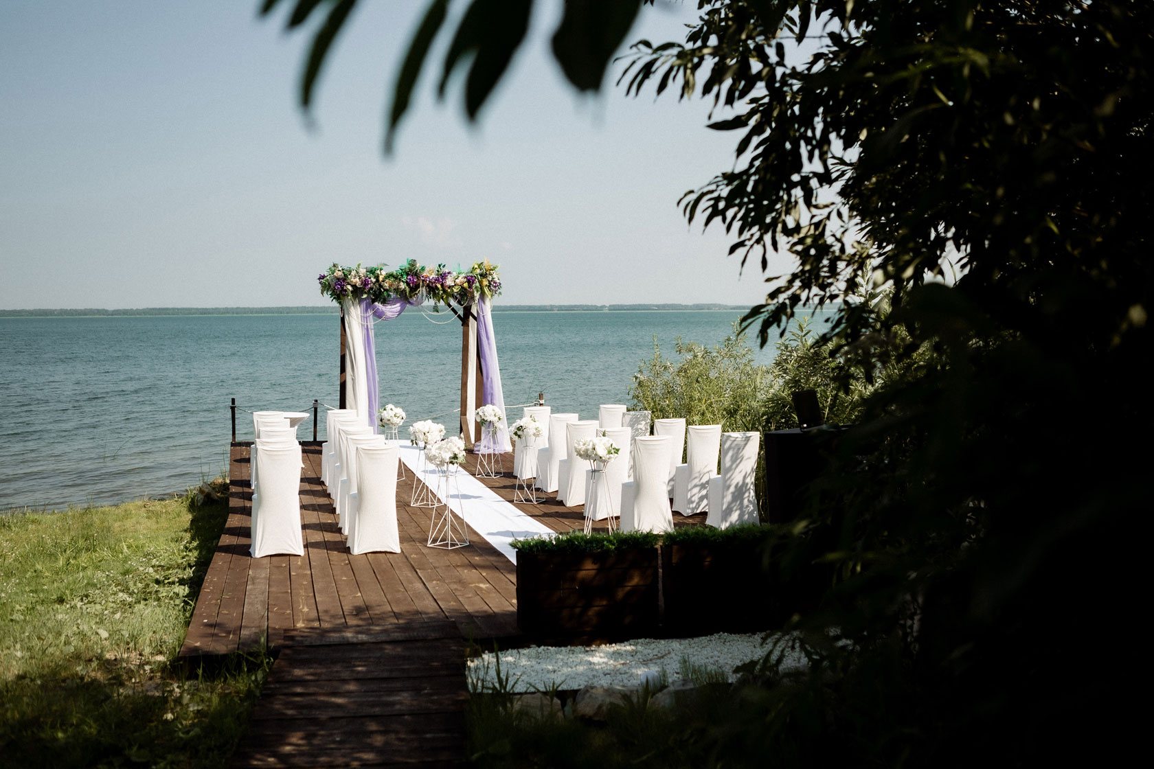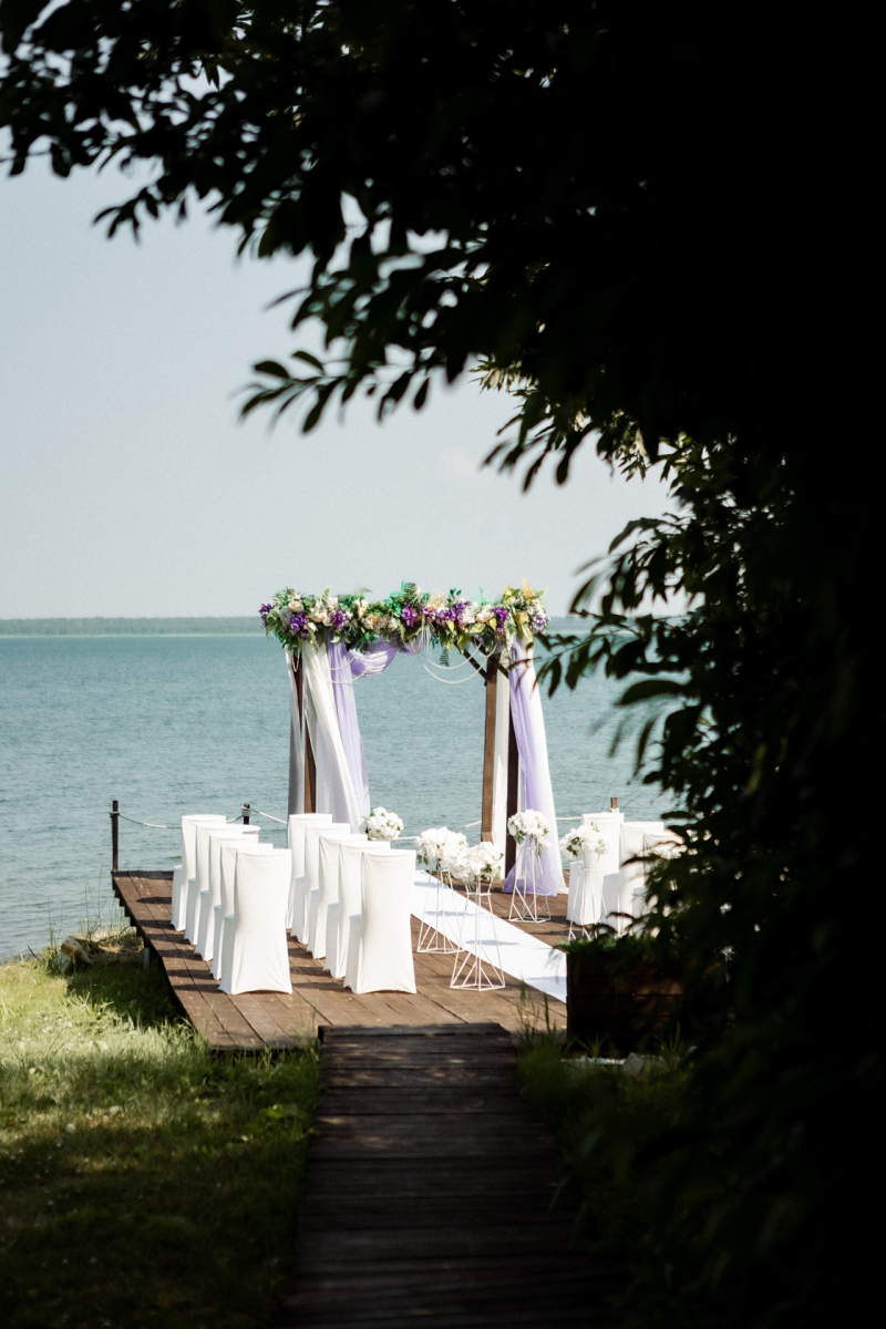 Мы подготовили несколько локаций для проведения выездной регистрации с фуршетом на территории Загородного комплекса Усадьба. Сама выездная регистрация или церемония может проходить на пирсе, прибрежной лужайке или лесной ротонде.