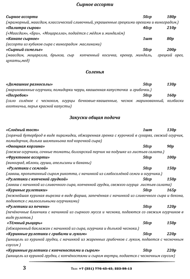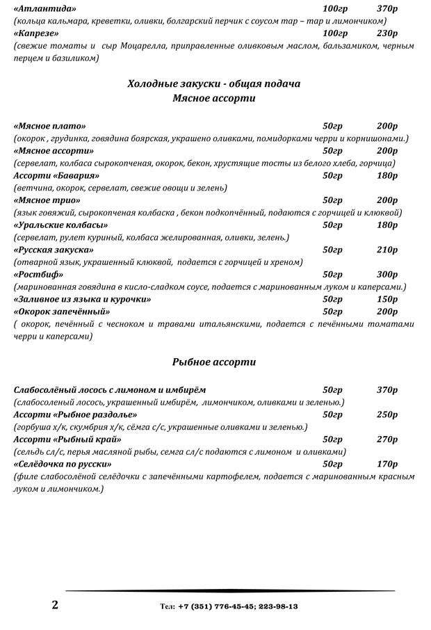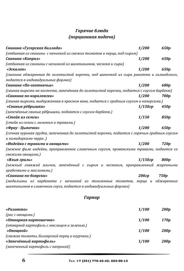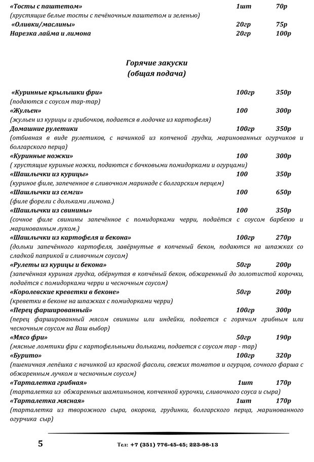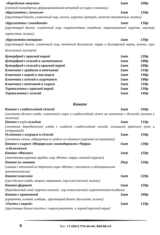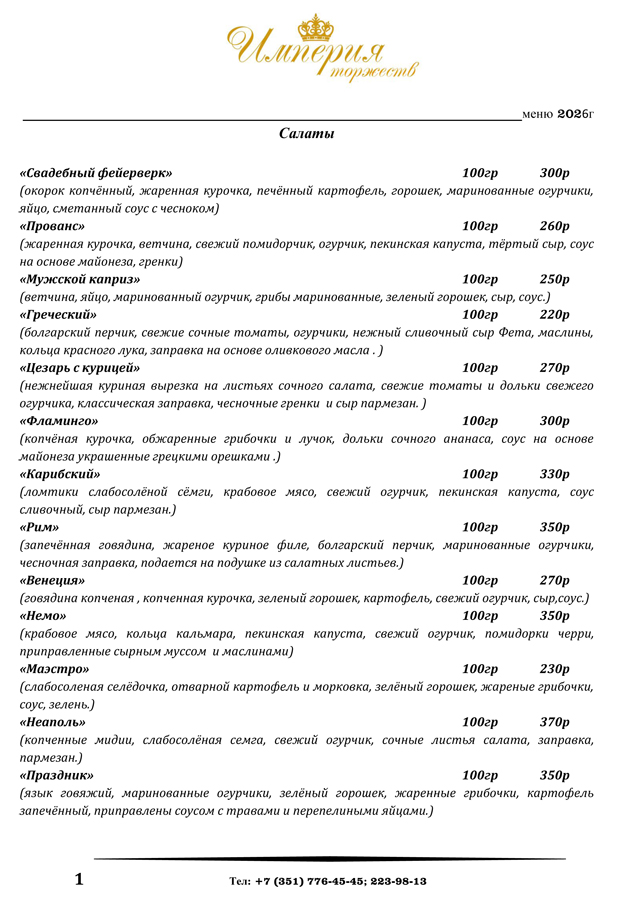 меню банкетного зала и шатров