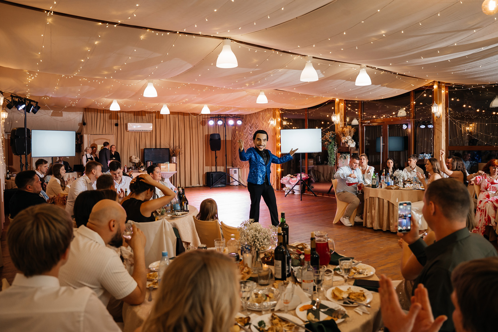 - зал для свадьбы, который оснащен кондиционерами и подогревами воздуха;